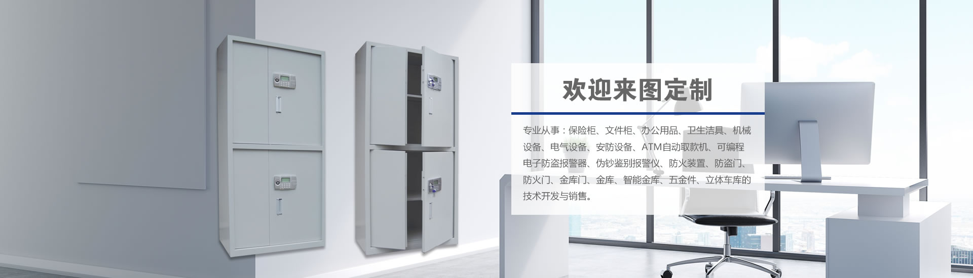 ? 專業(yè)從事:保險柜、文件柜、辦公用品、衛(wèi)生潔具、機械設(shè)備、電氣設(shè)備、安防設(shè)備、ATM自動取款機、可編程電子防盜報警器、偽鈔鑒別報警儀、防火裝置、防盜門、防火門、金庫門、金庫、智能金庫、五金件、立體車庫的技術(shù)開發(fā)與銷售